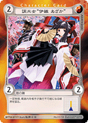 微笑みを浮かべながら神楽の舞を舞う「伊雑 あざか」。彼女も阿羅耶識の能力者の一人です。 アクエリアンエイジで彼女が戦いの場に立つと、大掛かりな魔法や作戦であるプロジェクトカードを捨て札し、妨害します。 さらにマインドブレイカーである貴方にプロジェクトカードのコスト分カードを引かせることで、貴方をサポートしてくれるのです! マジキューに掲載されたアクエリアンエイジメモリーズでは、あざかが同じ阿羅耶識に所属する「厳島 美晴」や「篠宮 清音」、「三輪 幸」と鹿島神宮で強化合宿を行ったことも。合宿に一緒に参加した仲間の中でも、特に「篠宮 清音」と非常に仲がよい模様。 笛と舞、デッキを組む際には隣りに並べて力をあわせるのもいいかもしれませんよ? |